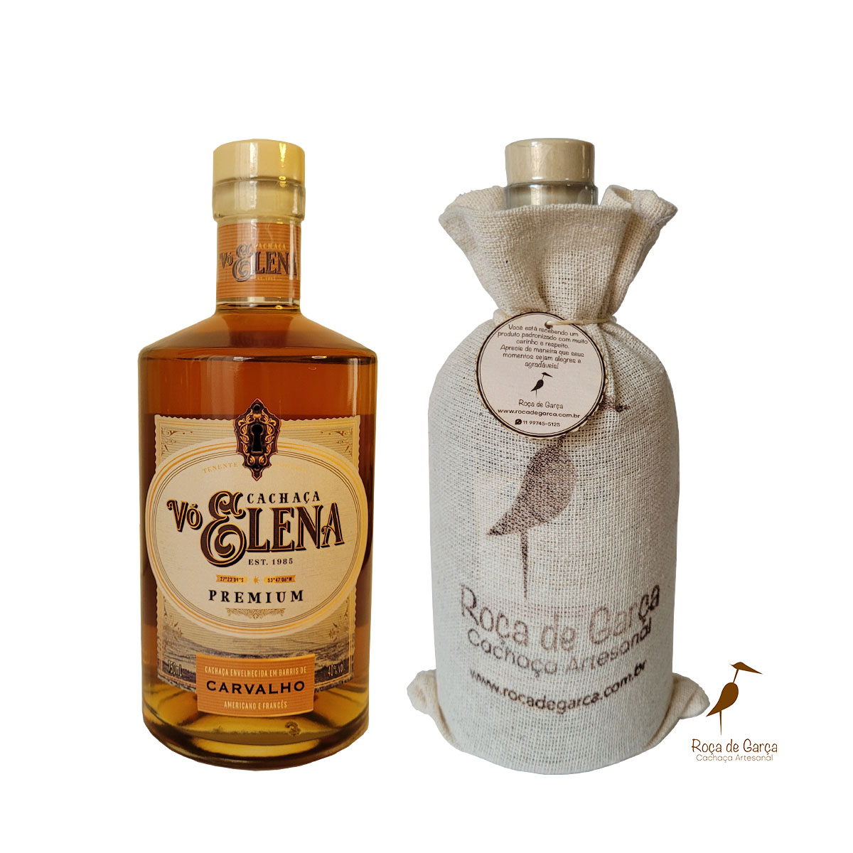 Cachaça de Alambique Premium Vó Elena 750ml é uma bebida dourada, 100% envelhecida por 12 meses em cada madeira de carvalho francês e americano, promovendo uma bebida única. O Carvalho Francês traz aromas e sabores equilibrados com toques adocicados de caramelo e frutas secas e uma textura suave e macia. O Carvalho Americano traz aromas e sabores de mel e baunilha. Com graduação alcoólica de 40%. Produzida artesanalmente no interior do Rio Grande Sul.